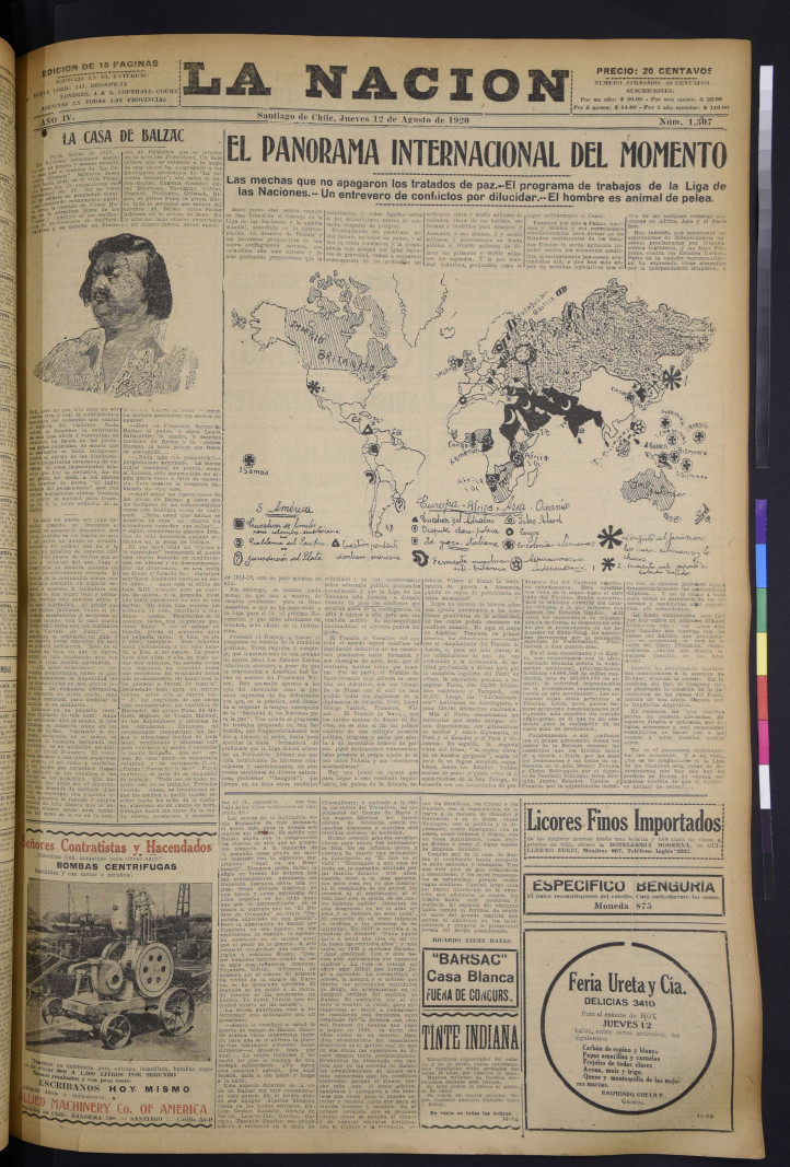 La Nación. Santiago : Talleres Gráficos. La Nación, 1917-2010, volumenes, año IV, número 1.307, (12 agosto 1920)