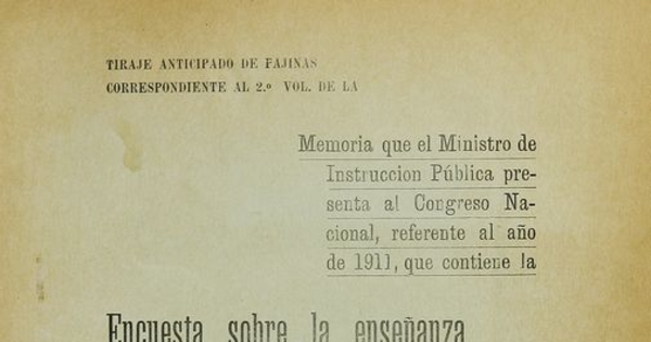 Encuesta sobre la enseñanza particular subvencionada : memoria que el Ministro de Instrucción Pública presenta al Congreso Nacional referente al año de 1911