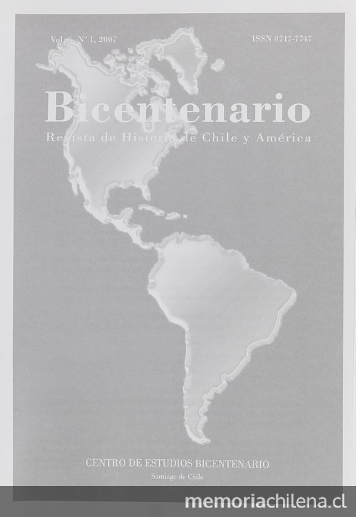 Bicentenario : revista de historia de Chile y América / Centro de Estudios Bicentenario. Santiago : El Centro, 2002- (Santiago : Lom) volúmenes, volumen 6, número 1, (2007), páginas 39-70