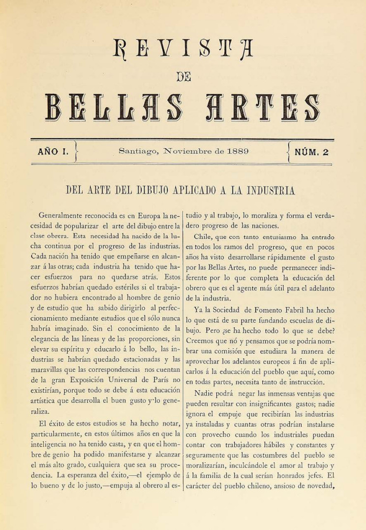 La Revista de Chile. Santiago : Hume y Cia., 1898-1901. 7 volúmenes, año I, número 2, (noviembre 1889), páginas 34-40