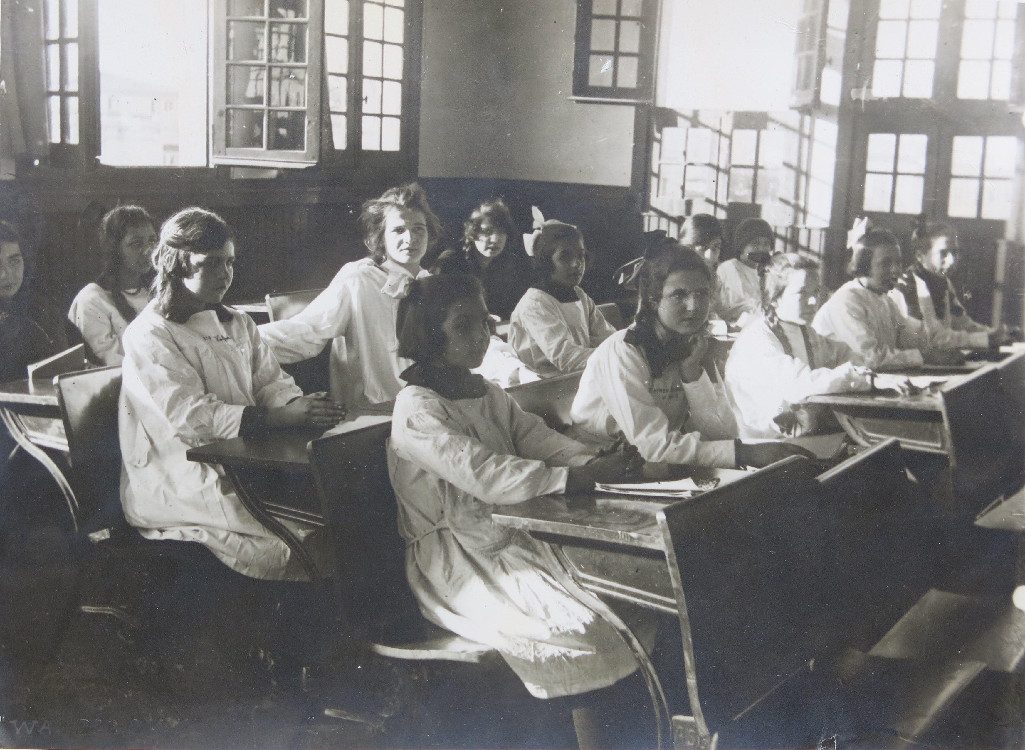 Mariquita García en el colegio, interpretada por Nena Serrano: escena de "Uno de abajo" de Armando Rojas Castro, 1920