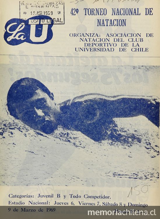 42. Torneo Nacional de Natación :categorías juvenil B y todo competidor : Estadio Nacional 6, 7, 8 y 9 de marzo de 1969