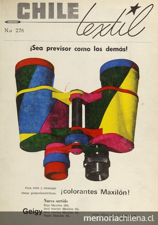 Chile textil : revista de la industria y comercio textil de Chile. Santiago : [s.n., 1944?]- v., n° 278-283, 286, (1968)