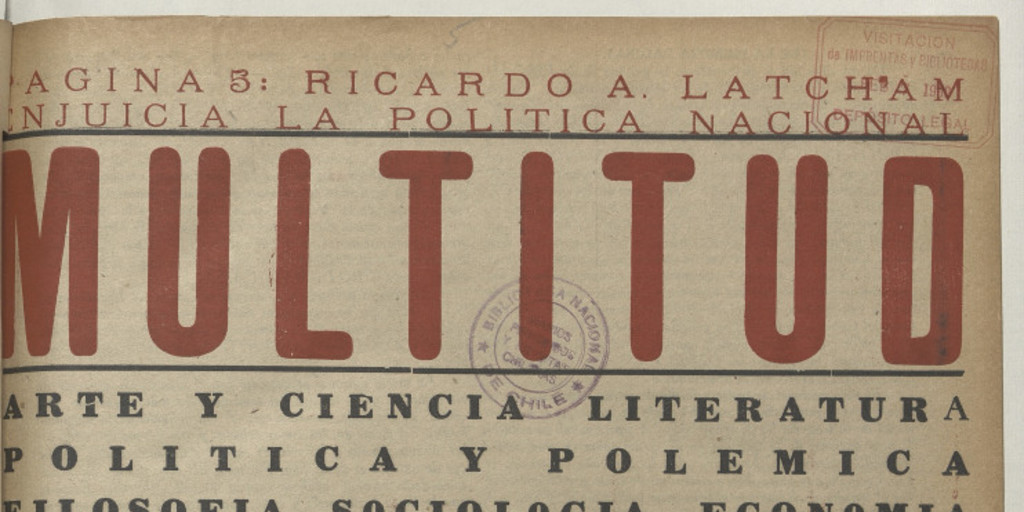 Multitud. Santiago : Editor no identificado, 1939-1963. volúmenes, año I, número 5, (1ª semana febrero 1939), páginas 1 y 2