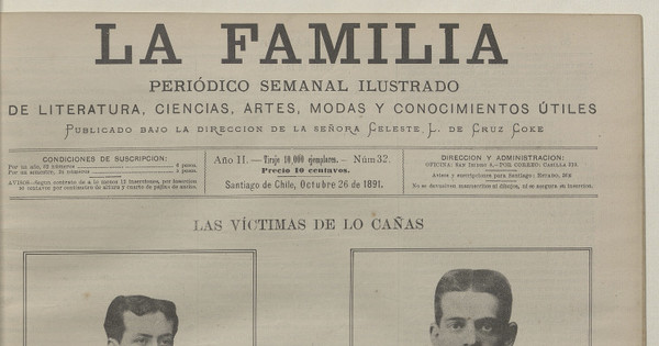 La Familia. Santiago: Imprenta Cervantes, 1890-1892, año II, número 32 (26 de octubre de 1891), páginas 60-61