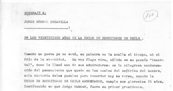 Título secundario: En los veinticinco años de la Unión de Escritores de Chile