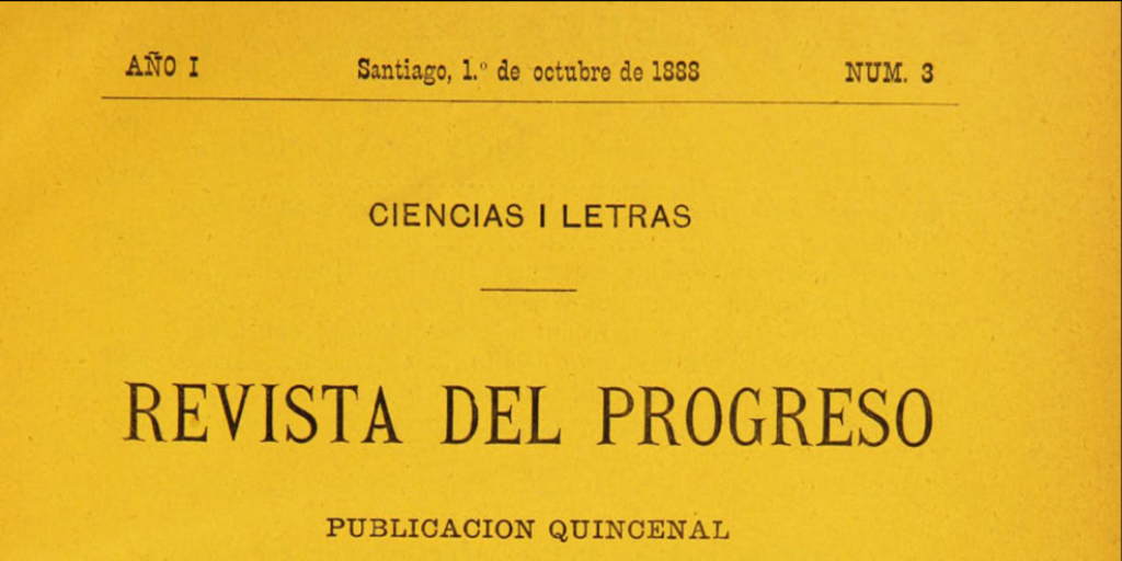 Revista del Progreso. Santiago: El Club, 1888-1890 (Santiago: La Libertad electoral), 3 volúmenes. Tomo I, año I, número 1 (1 de septiembre de 1888), páginas 1-5