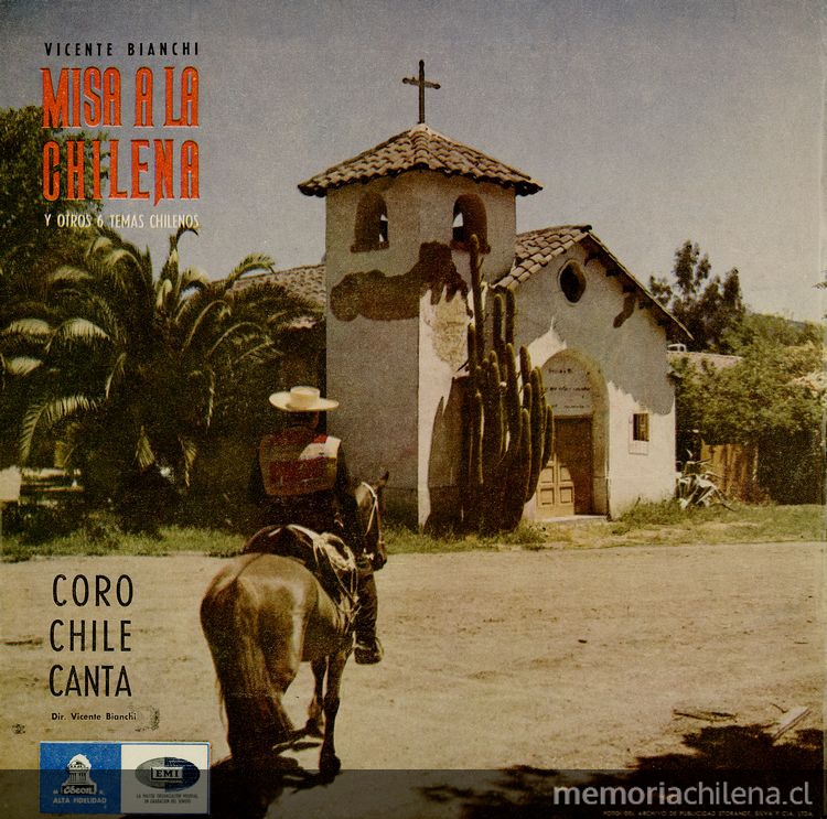 Misa a la chilena y otros 6 temas chilenos [grabación] / música de Vicente Bianchi ; [interpreta] Coro Chile Canta. Santiago : EMI, 1991. 1 disco compacto ; stereo. digital ; (aproximadamente 44 minutos) -- (AAD 7 97727 2)