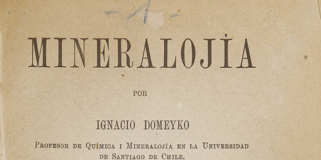 En portada: Por don Ignacio Domeyko, profesor de química y mineralojía en la Universidad de Santiago de Chile.