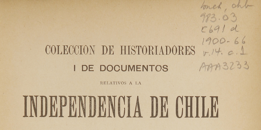 Materias: Chile - Historiografía - Siglo 20Historia - Investigaciones - ChileChile - Historia - Guerra de Independencia, 1810-1824 - FuentesChile - Historiografía - Siglo 19Chile - Historia Militar - 1810-1824