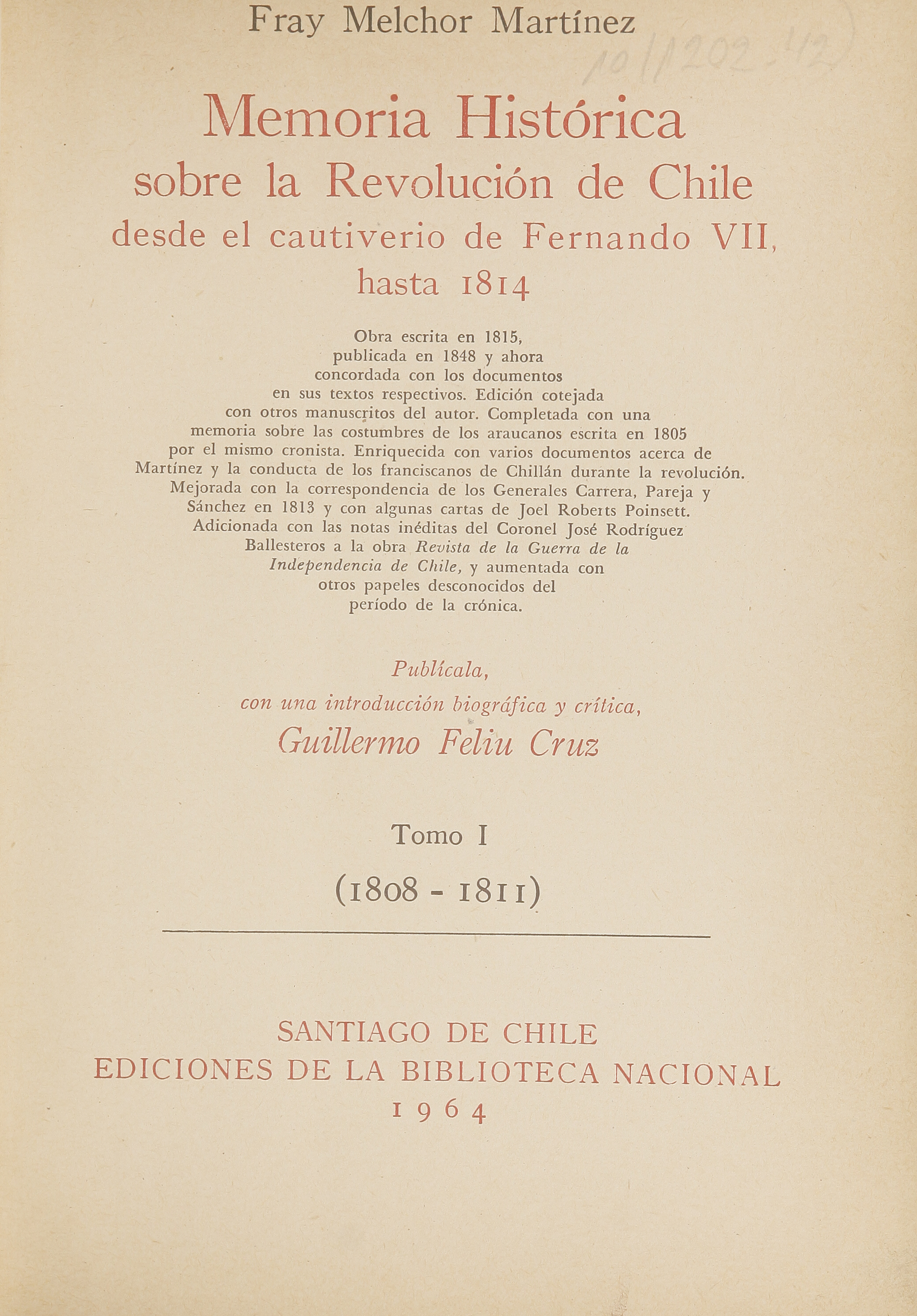 Materias: Chile - Historiografía - Siglo 20Historia - Investigaciones - ChileChile - Historia militar - Siglo 19Chile - Historiografía - Siglo 19Chile - Historia - Guerra de Independencia, 1810-1824 - Fuentes