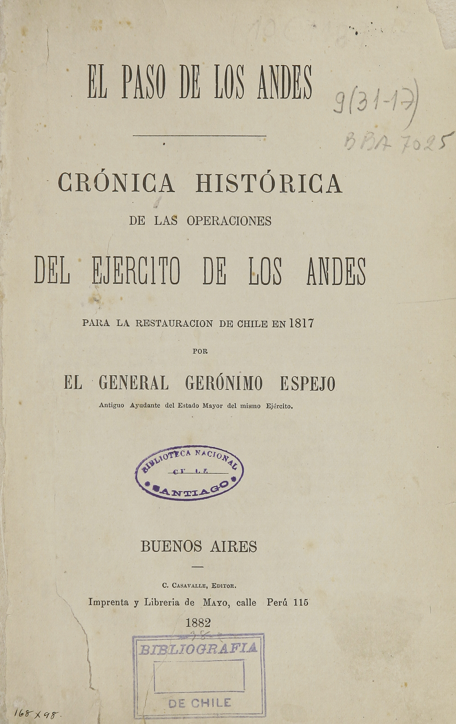 El paso de los Andes: Crónica histórica de las operaciones del Ejercito de los Andes para la restauración de Chile en 1817