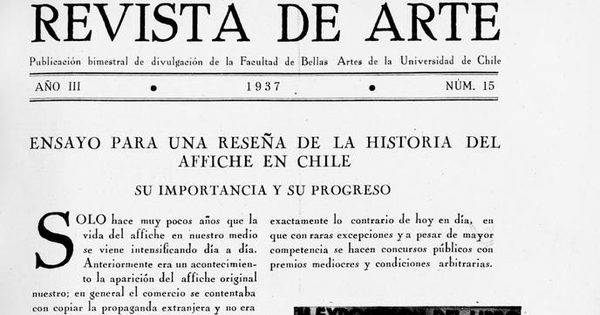 Revista de arte / Universidad de Chile, Facultad de Bellas Artes. Santiago : La Facultad, 1934-1962. 12 volúmenes, año 3, número 15, (1937)