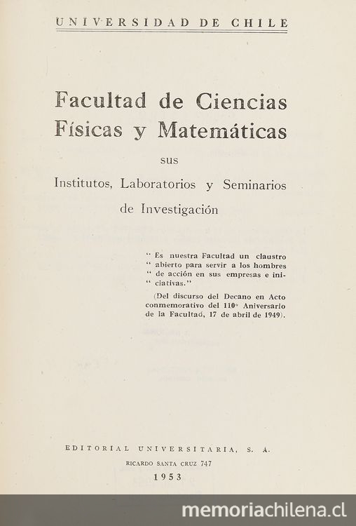 Facultad de Ciencias Físicas y Matemáticas: sus institutos, laboratorios y seminarios de investigación
