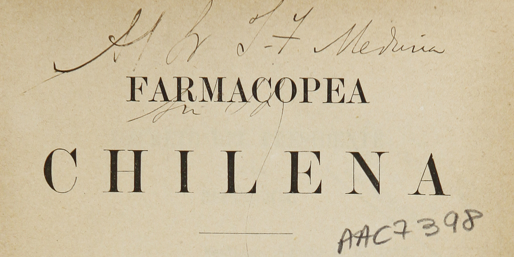 Bajo el título: Obra premiada por la Facultad de Medicina de Chile y mandada adoptar por el supremo gobierno de la república como Farmacopea nacional