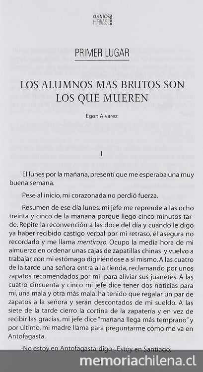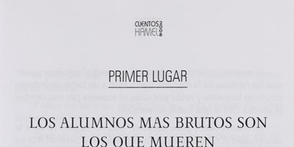 Concurso Cuentos Hamel 2008. 1a. ed. Santiago, Chile : Sociedad de Escritores de Chile, 2009 (Santiago : Gráfica LOM) 128 páginas