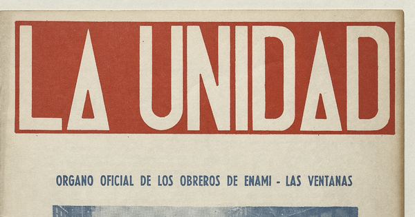 La Unidad. Órgano oficial de los obreros de ENAMI-Las Ventanas. Valparaíso: Imprenta Lourdes, 1969-1973, año II, número 6 (marzo de 1970)