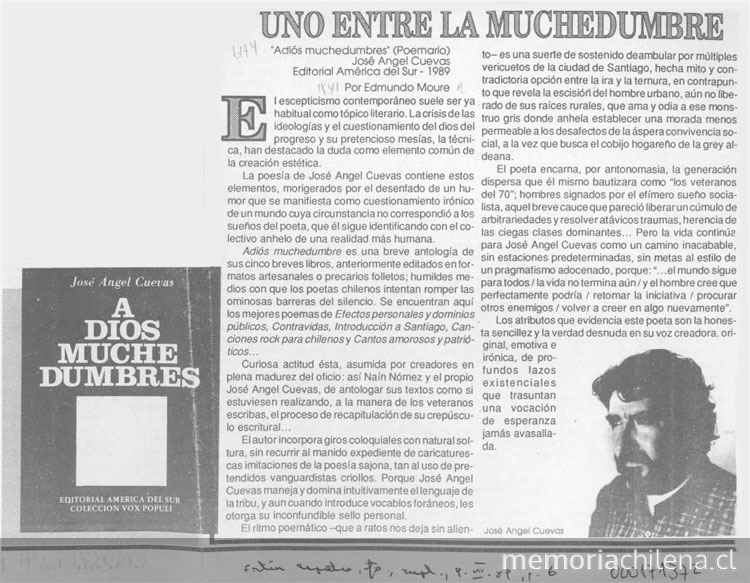 Fortín Mapocho. Santiago : [Editor no identificado], 1947-1991 (Santiago : Imprenta Britania) 56 volúmenes, (9 julio 1989), página 6 (suplemento)