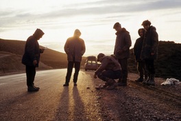 Parte del grupo que realizó la Travesía de Amereida en camino cercano a Caleta Olivia, Argentina