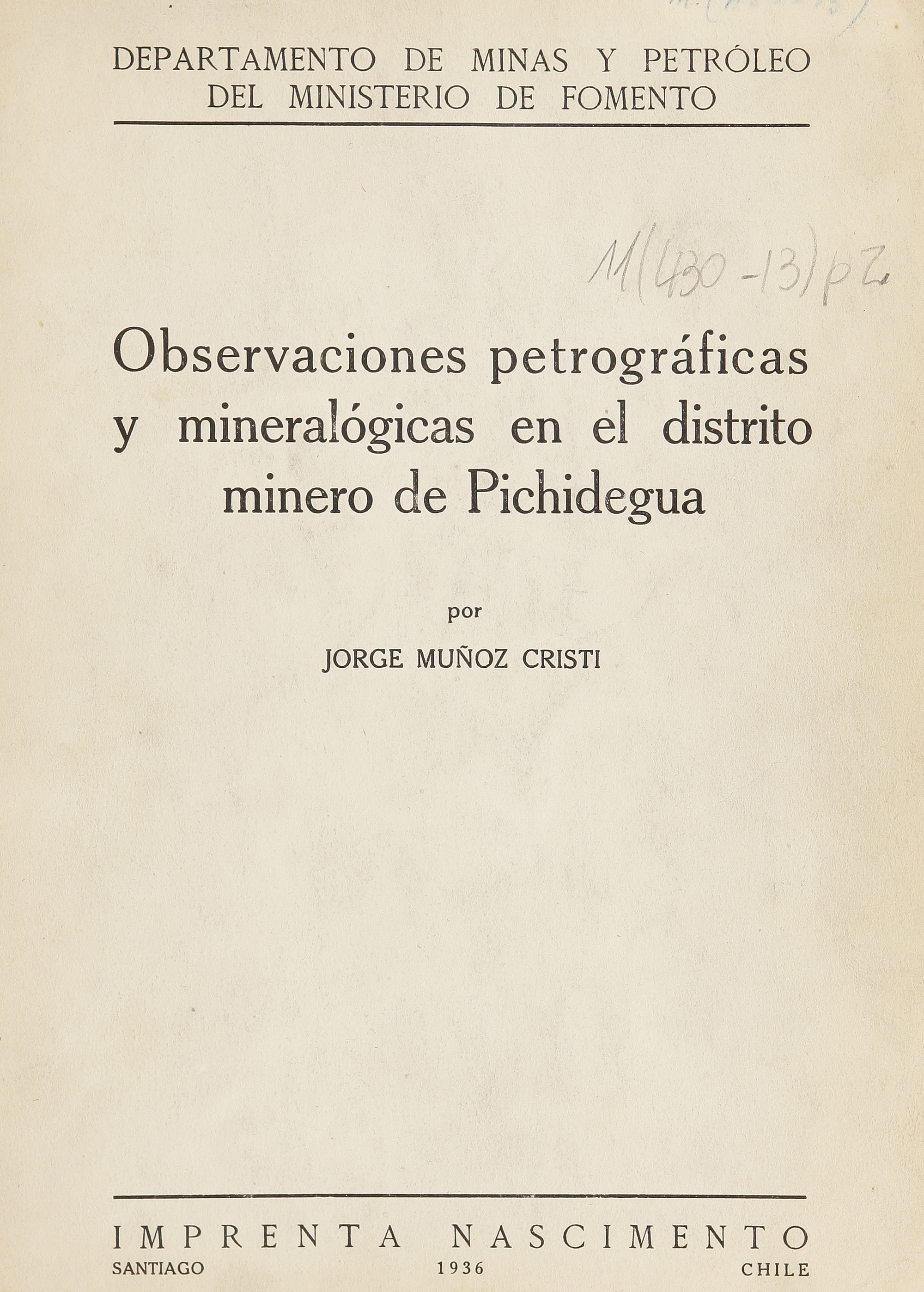 Autor secundario: Ministerio de Fomento (Chile). Departamento de Minas y Petróleo