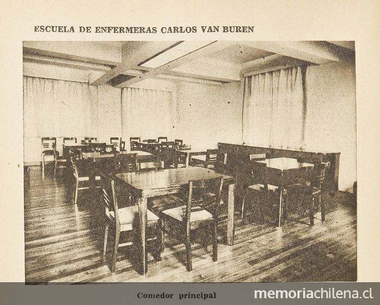 Comedor para alumnas del internado Escuela de Enfermeras Carlos Van Buren, 1935
