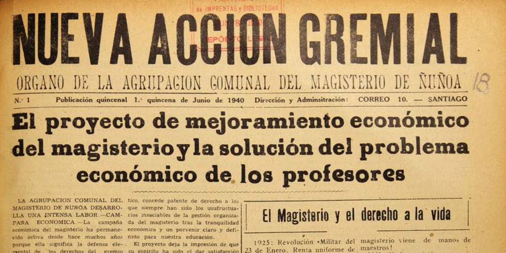 Órgano de la Agrupación Comunal del Magisterio de Ñuñoa, 1940-1941