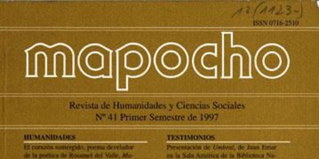 Mapocho / Biblioteca Nacional. Santiago : La Biblioteca, 1963- (Santiago : Universitaria) v. número 41, (Primer semestre 1997), páginas 9-17