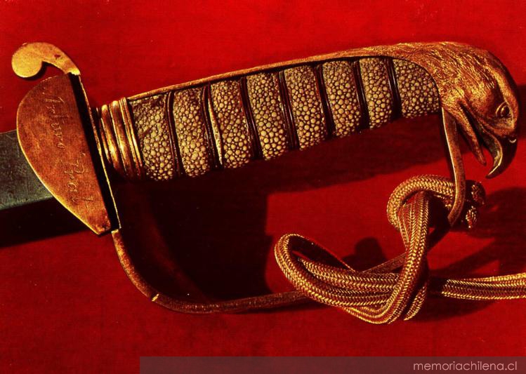 Detalle de la empuñadura de la espada de Arturo Prat, hacia 1990