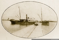 - Vapor cargando lana en el muelle del frigorífico de Puerto Bories, 1920
