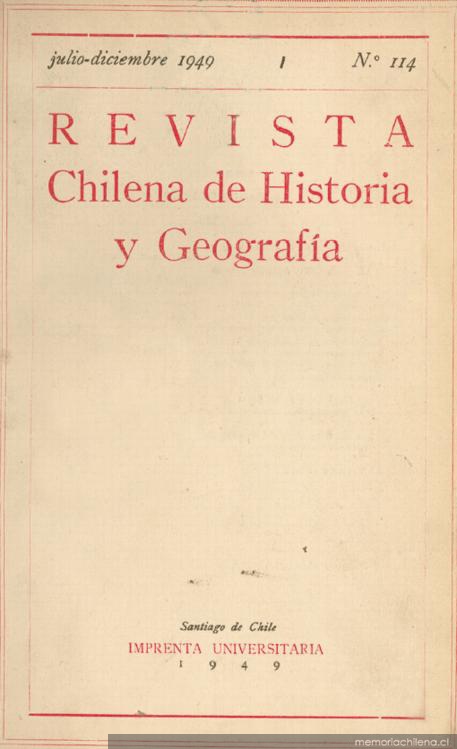 Revista chilena de historia y geografía / Sociedad Chilena de Historia y Geografía. Santiago : La Sociedad, 1911- , 80 volúmenes, número 114, (julio-diciembre 1949), páginas [5]-47