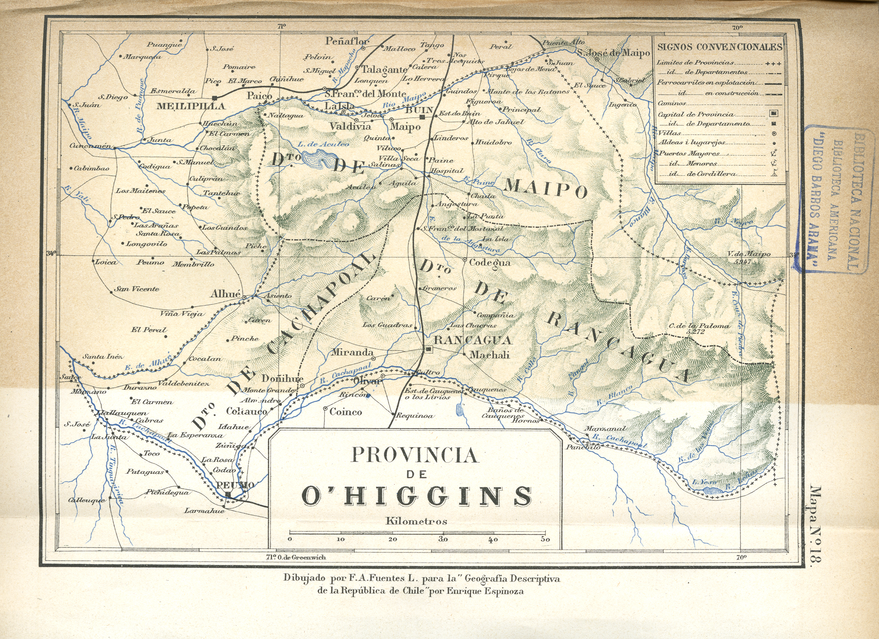 Jeografía descriptiva de la República de Chile / por Enrique Espinoza. Santiago de Chile: Imprenta i Encuadernación Barcelona, 1897, mapa N° 18