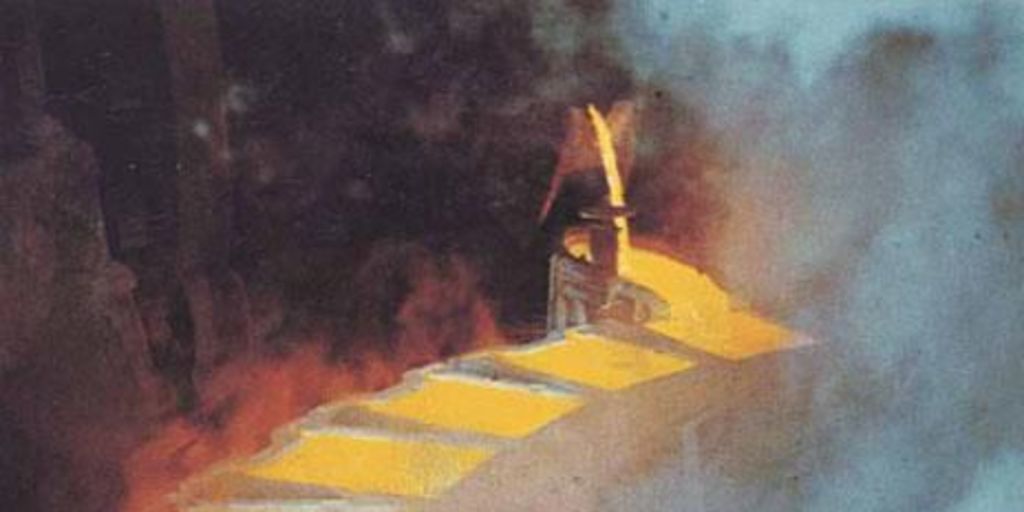 Cobre colocado en moldes de la rueda giratoria, hacia 1975