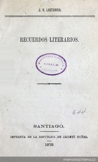 Recuerdos literarios. Santiago :Zig-Zag,1968, c1967. 452 p. ;21 cm.