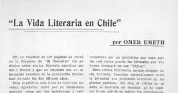 La vida literaria en Chile, por Omer Emeth