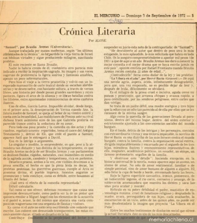 El Mercurio. Santiago: Talleres El Mercurio, 1900-. (3 Sept. 1972), p.5