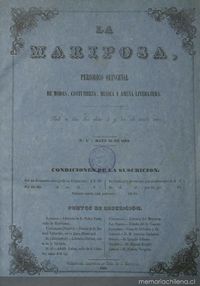 La Mariposa. Valparaíso :Impr. de Chile,1863-1864. 34 nos., h. láms. col. ;31 cm.