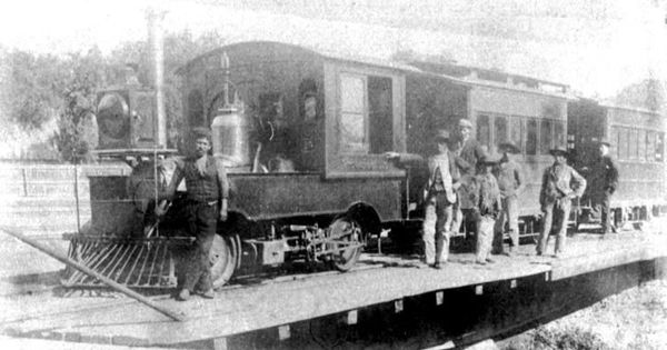 Ferrocarril con locomotora métrica a vapor, probablemente construida en Chile, hacia 1900
