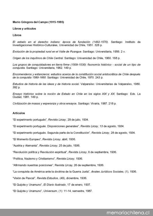 Libros y artículos de Mario Góngora