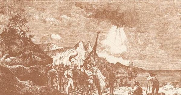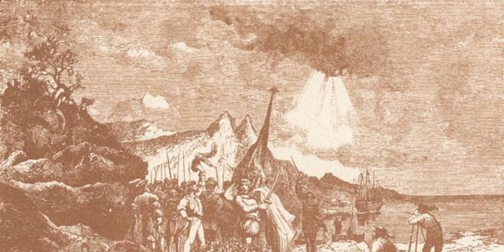 Juan Ladrillero tomando posesión del Estrecho, 1558