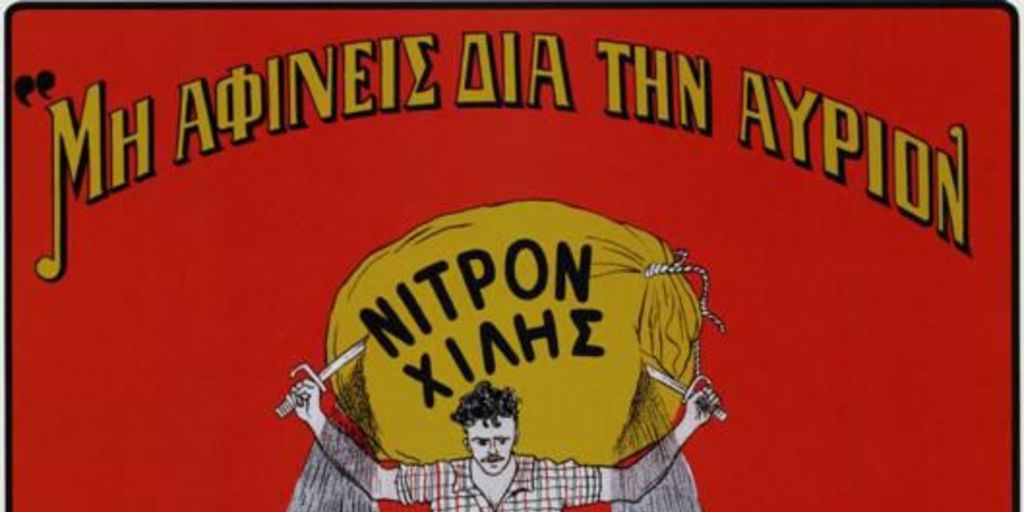 Afiche propaganda salitrera chilena en Grecia