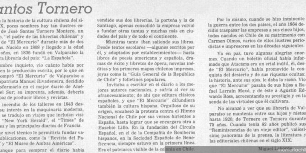 El Mercurio. Santiago : Talleres El Mercurio, 1900- . v. (9 jun. 1994), p. A3