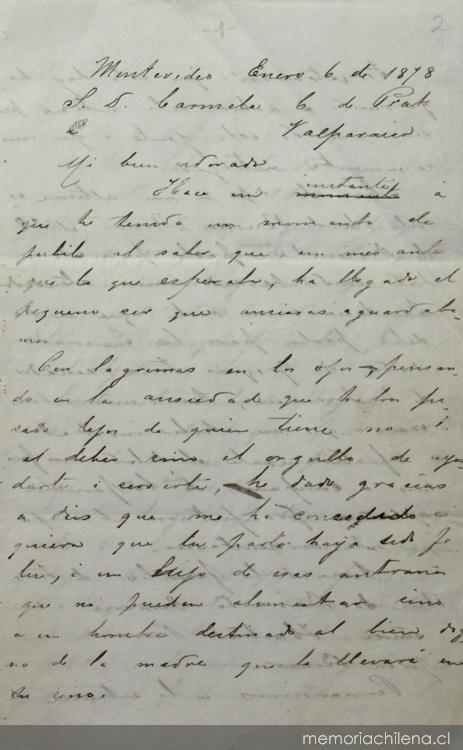 Montevideo, 6 de enero de 1878 [1879] : carta de Arturo Prat a Carmela Carvajal