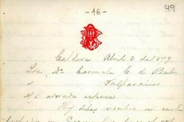 Caldera, 2 de abril de 1879 : carta de Arturo Prat a Carmela Carvajal