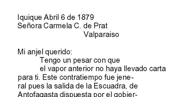 Iquique, 6 de abril de 1879 : carta de Arturo Prat a Carmela Carvajal