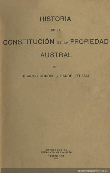 Historia de la constitución de la propiedad austral / por Ricardo Donoso y Fanor Velasco. Santiago de Chile: Imprenta Cervantes, 1928. Páginas 33-81