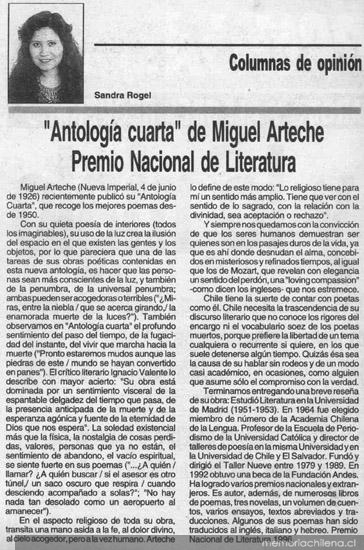 Antología cuarta, de Miguel Arteche, Premio Nacional de Literatura