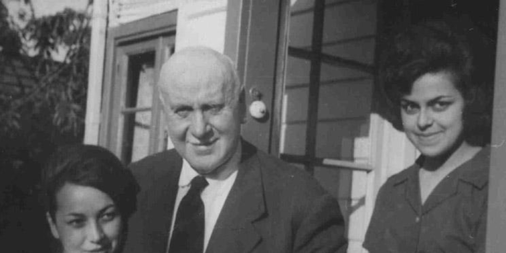 Fernando Santiván junto a sus hijas Iris y Regina, hacia 1963