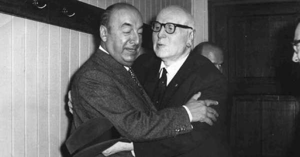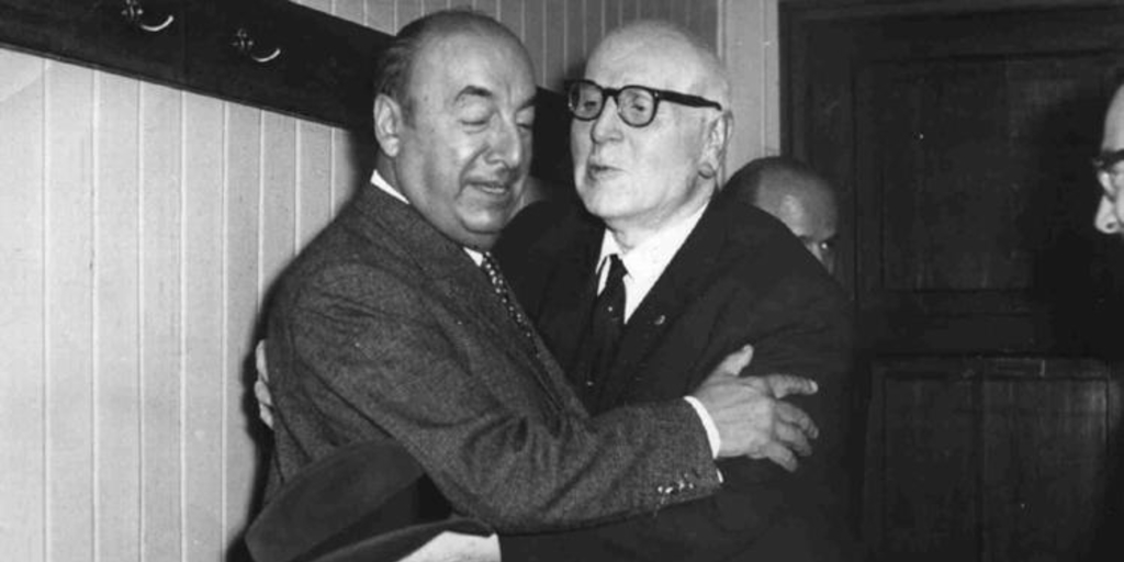 Fernando Santiván y Pablo Neruda, hacia 1967