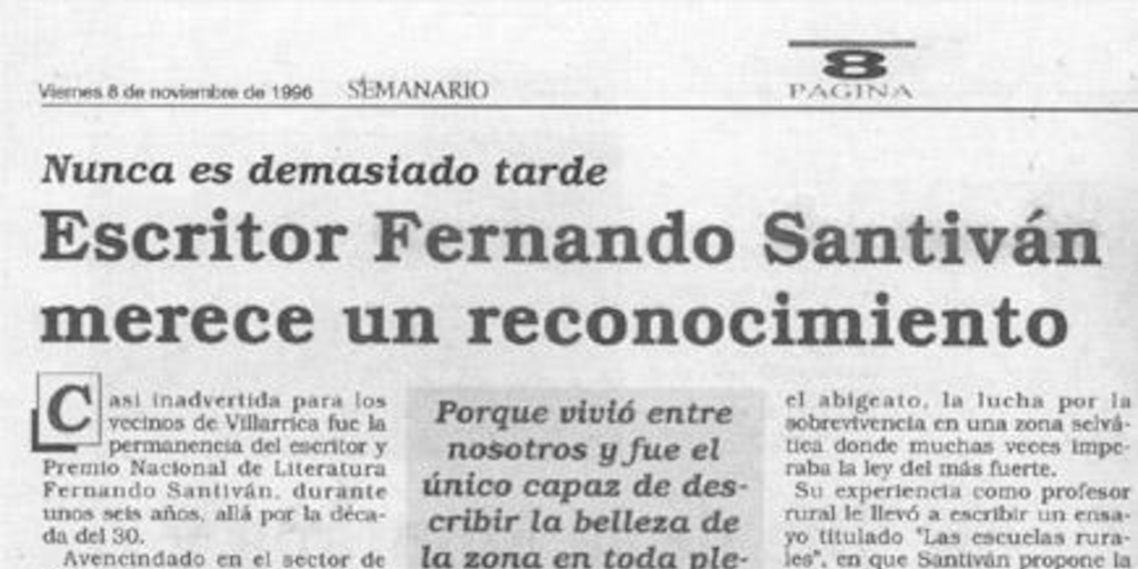 Escritor Fernando Santiván merece un reconocimiento
