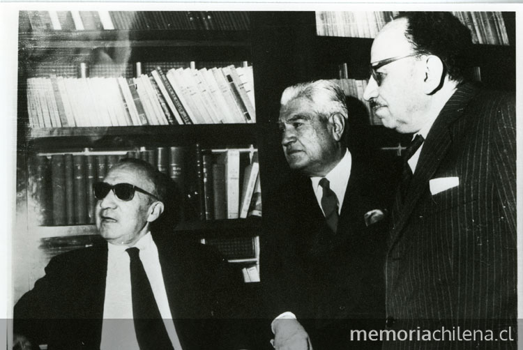 Manuel Rojas junto a Carlos Droguett y Enrique Espinoza, hacia 1968